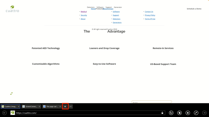 2. The browser will open and it will go to the Heska webpage, ask the user to click on the plus sign on the bottom of the page to open up a new tab then assist them with connecting Screen Connect or any desk.