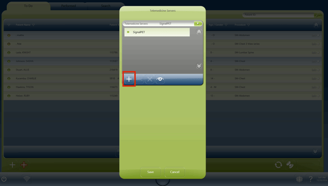 6. Under Telemedicine servers click the plus sign and then add our SignalPET dicom info and save.