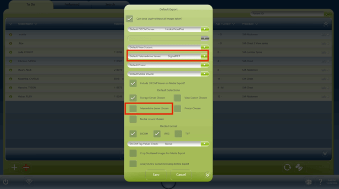Click on Default Telemedicine Server and select SignalPET. Then Tick the option "Telemedicene Server Chosen". Then save.