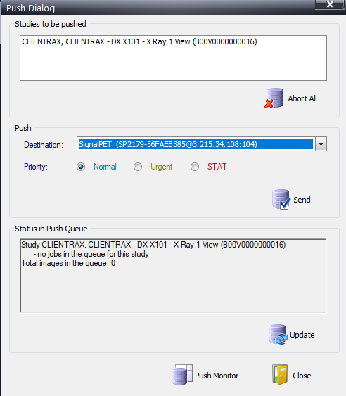 2) Click on study and click on the "Push" icon on the top of the screen. It opens up the dialog below: