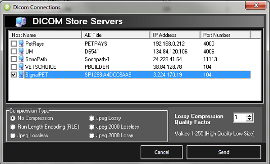 4) Ensure that SignalPET is ticked, then click on "Send":