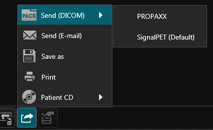 3) Hover over Send (DICOM), then choose SignalPET. This will send the study through.