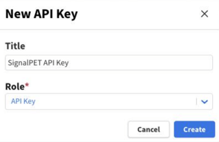 - Fill the title: 'SignalPET API Key' Role: "API Key"