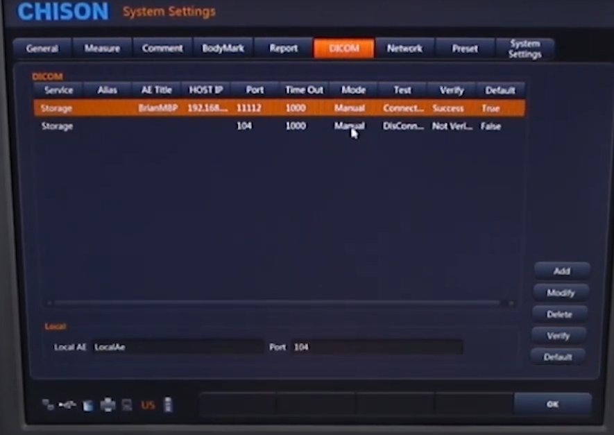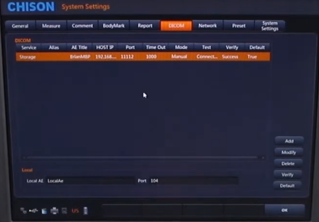 DICOM Setup for Chison Sonobook 9 (Minray)